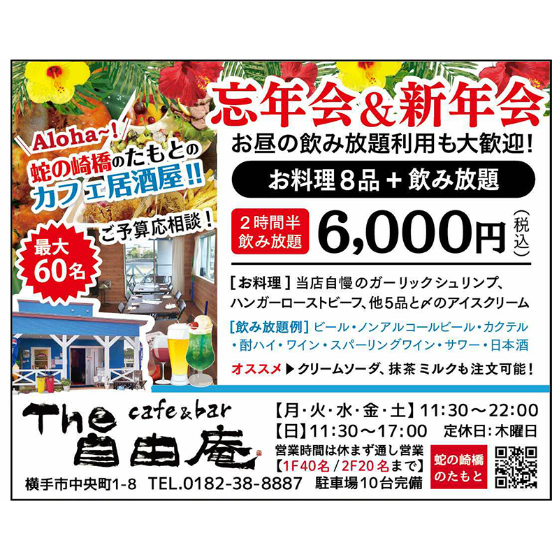 アボガド、野菜、チーズ等を使用したThe自由庵オリジナルサラダ。